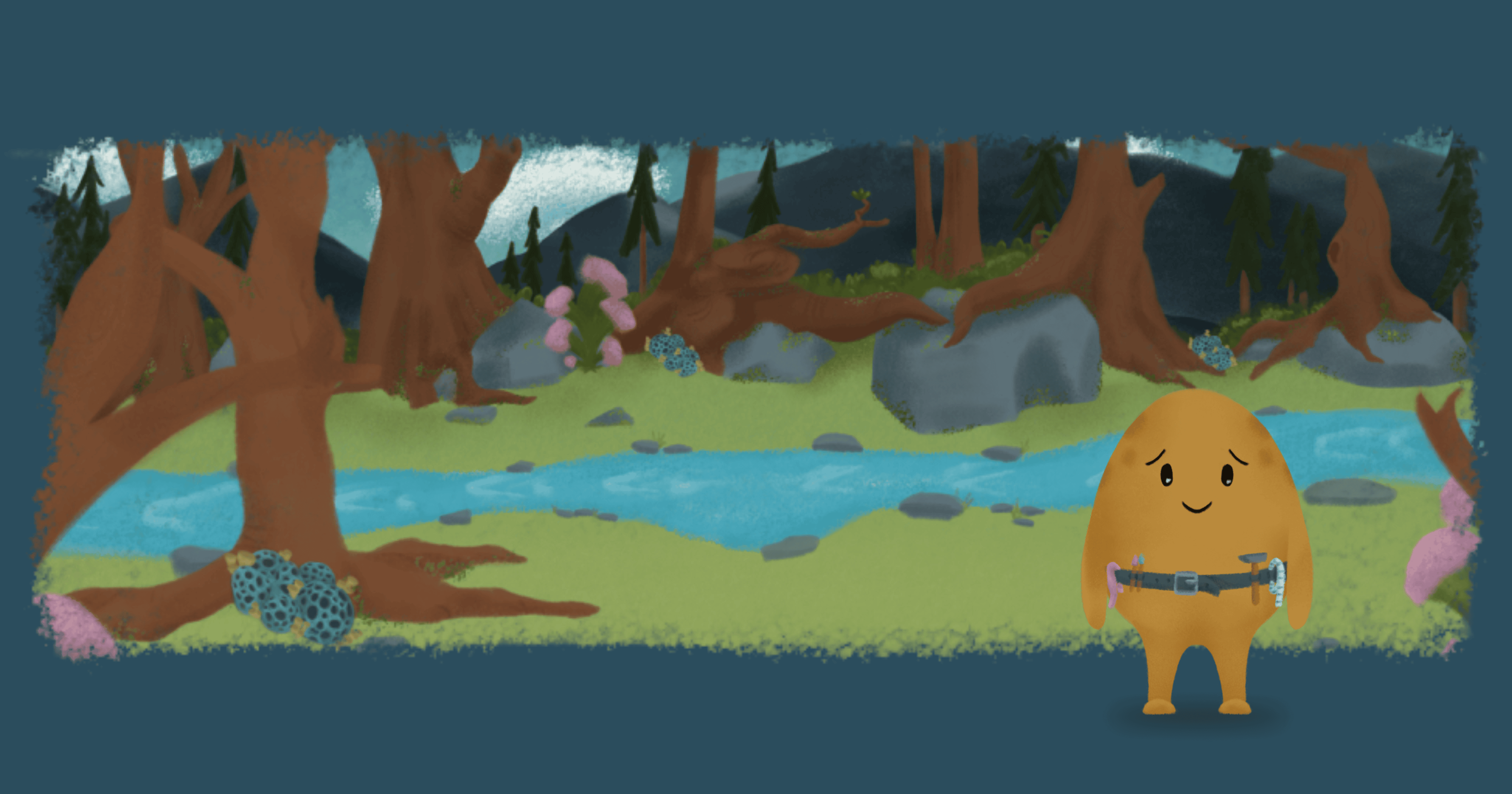 Everything is hand-drawn, prioritizing a wholesome feeling where the potato just wants to build a home rather than extract engagement metrics.